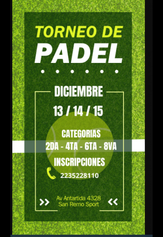 »» Evento: Torneo de Padel ETAPA Diciembre »» Localidad: Mar del Plata »» Fechas: 13/12/2024 al 15/12/2024