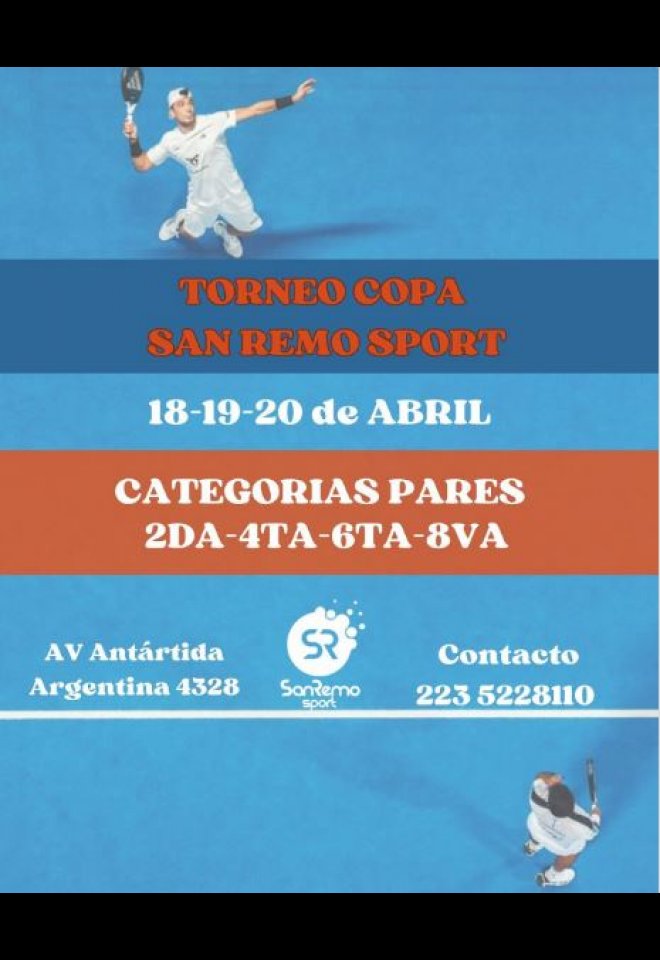 »» Evento: Etapa Abril - Copa San Remo Sport Pares »» Localidad: Mar del Plata »» Fechas: 18/04/2025 al 20/04/2025