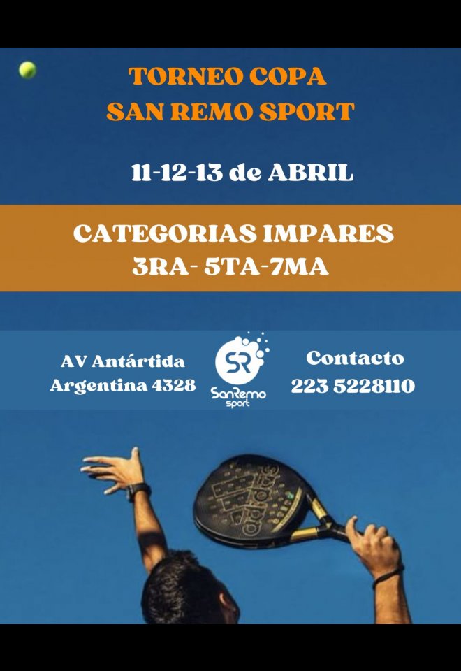 »» Evento: Etapa Abril - Copa San Remo Sport Impares »» Localidad: Mar del Plata »» Fechas: 25/04/2025 al 27/04/2025