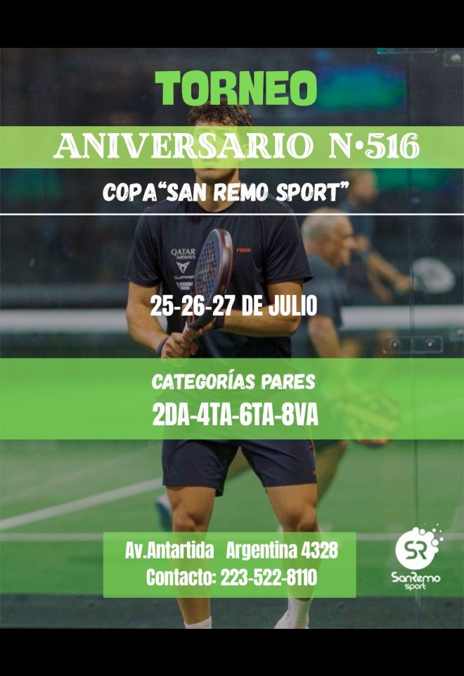 »» Evento: Torneo Copa San Remo Sports - Julio Pares »» Localidad: Mar del Plata »» Fechas: 25/07/2025 al 27/07/2025