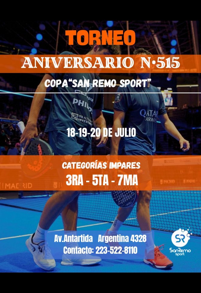 »» Evento: Torneo Copa San Remo Sports - Julio Impares »» Localidad: Mar del Plata »» Fechas: 18/07/2025 al 20/07/2025