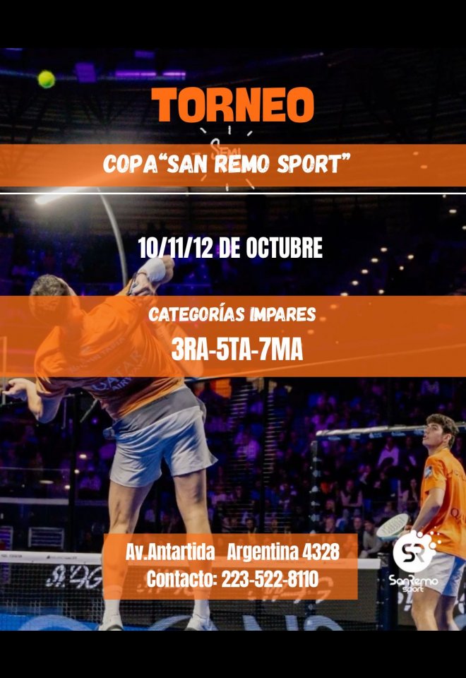 »» Evento: Torneo Copa San Remo Sports - Octubre - Pares »» Localidad: Mar del Plata »» Fechas: 24/10/2025 al 26/10/2025